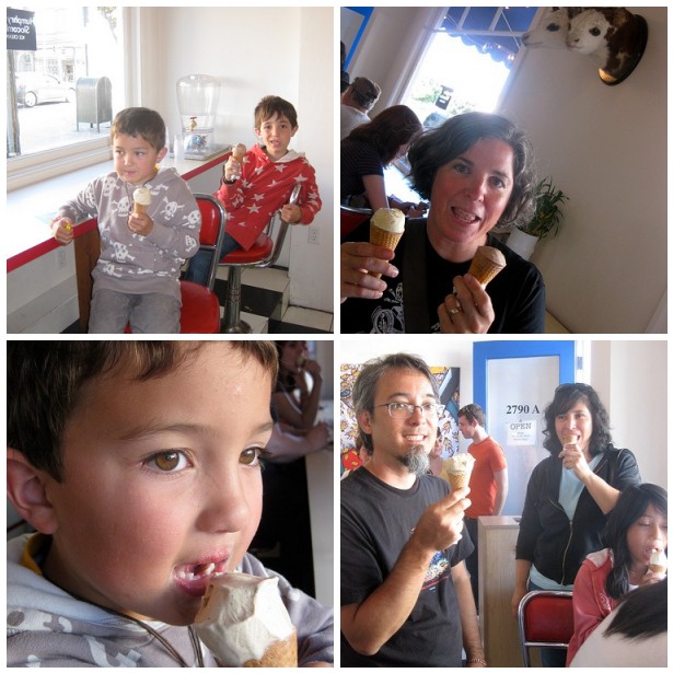 I'd like to thank the New York Times for publishing their provocatively titled article I’ll Take a Scoop of Prosciutto, Please, right before our trip to California. I told Warren that we absolutely, 100% had to go to Humphry Slocombe to taste the prosciutto ice cream. To help get the monkeys (Satchel, 8, and Jiro, 6) up the mountain on our backpacking trip prior to our San Francisco visit, I had told them tales of crazy ice cream flavors and promised them the most awesome ice cream adventure ever. "I'm getting cheddar cheese," Jiro happily announced. (Government Cheese is the actual flavor.)